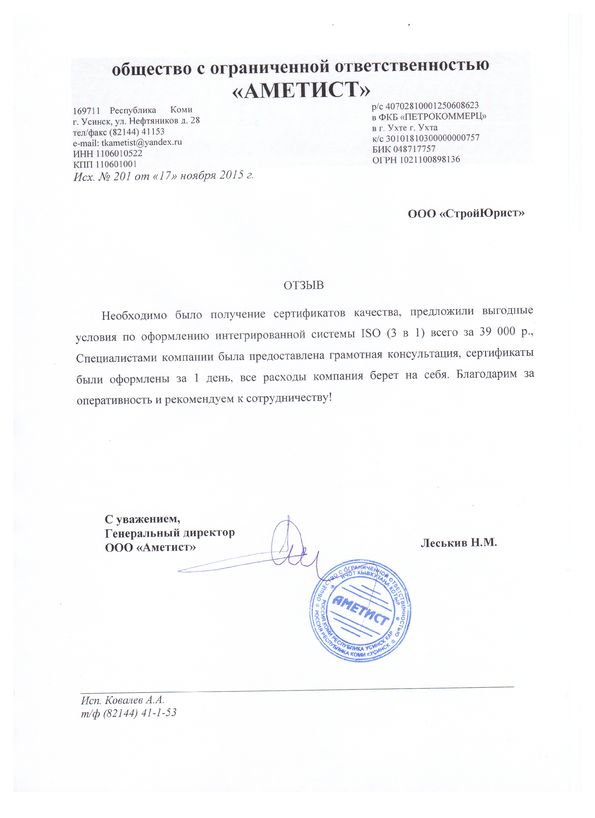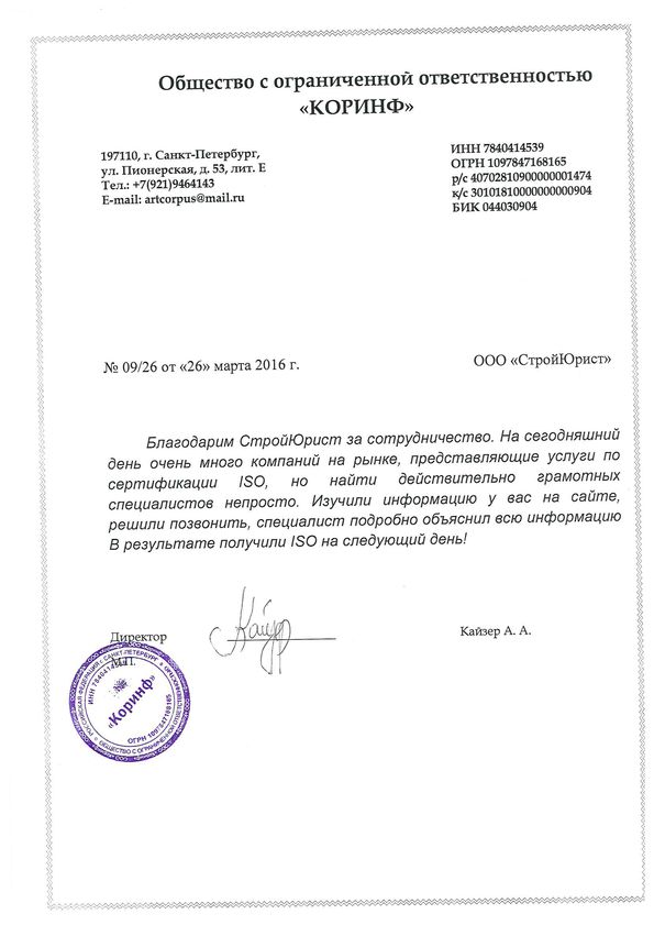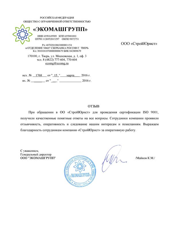Отзывы клиентов "СтройЮрист" по ISO в Ишиме