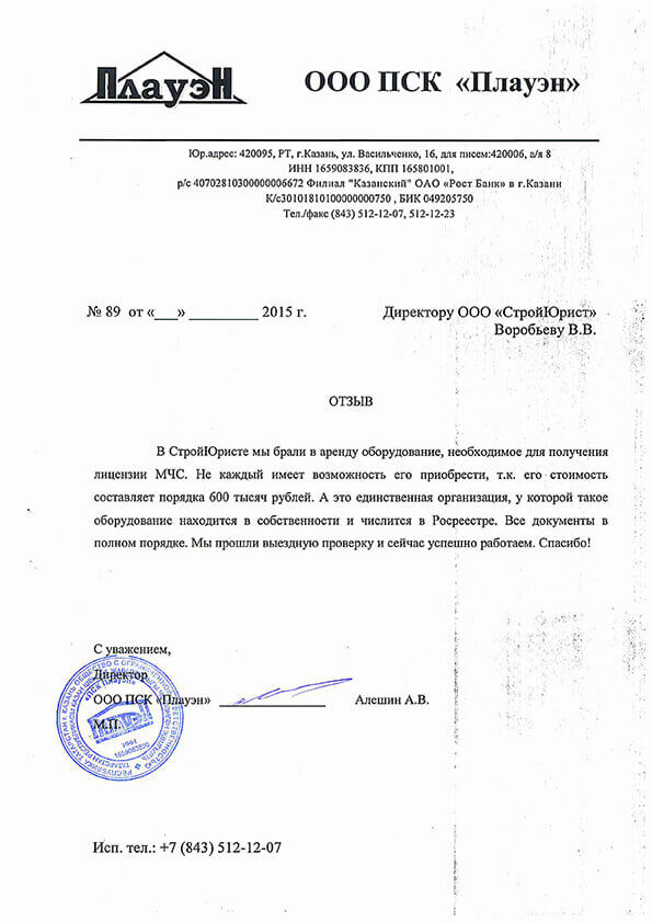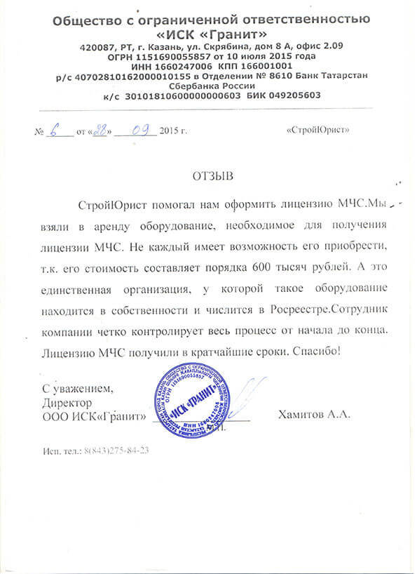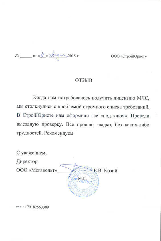 Отзывы клиентов "СтройЮрист" по лицензированию МЧС в Ишиме
