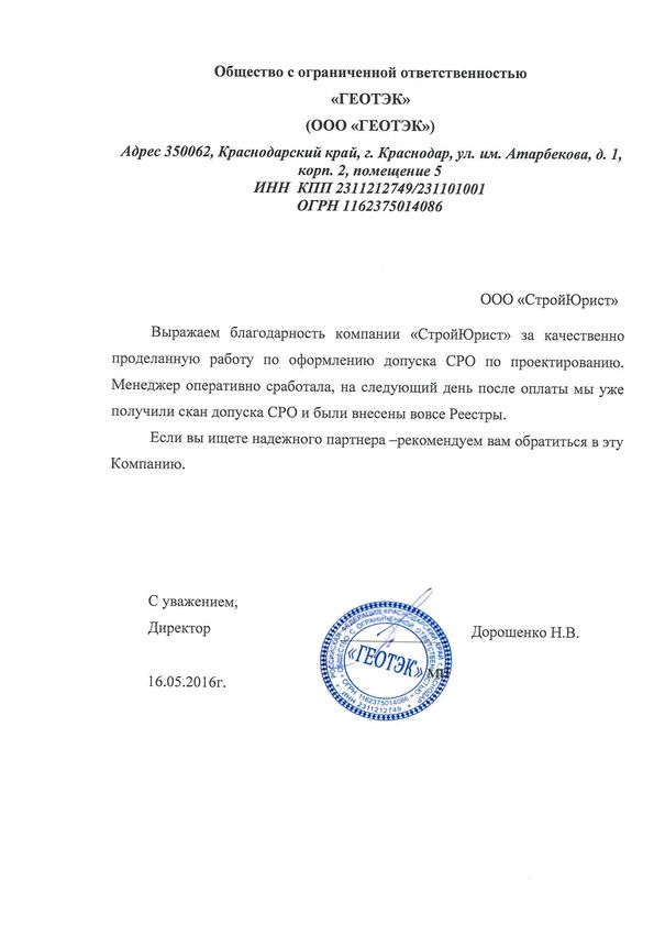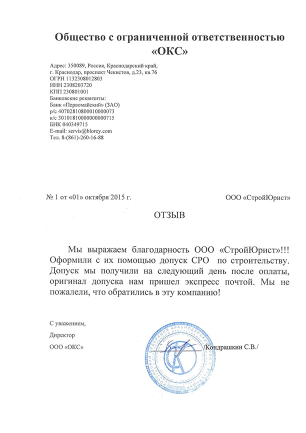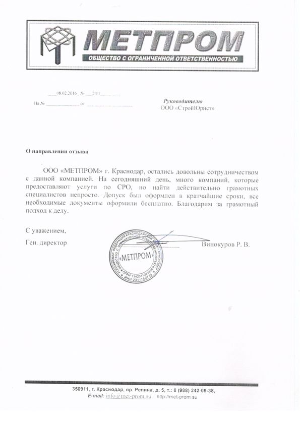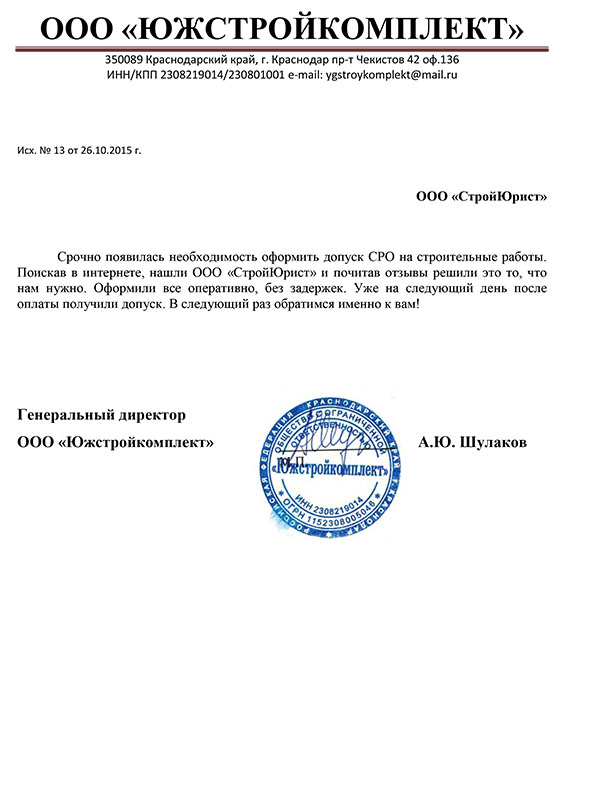 Отзывы клиентов "СтройЮрист" по вступлению в СРО в Ишиме