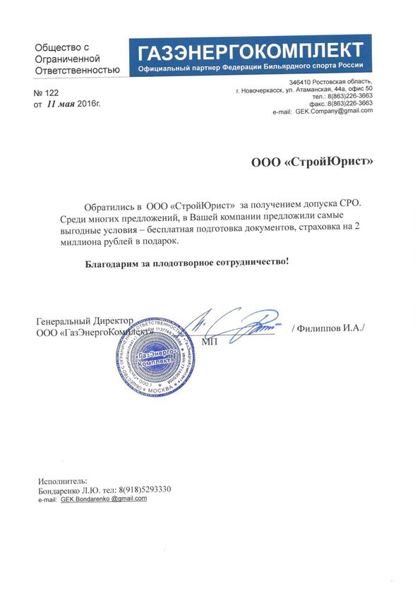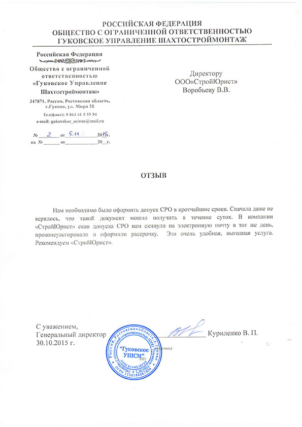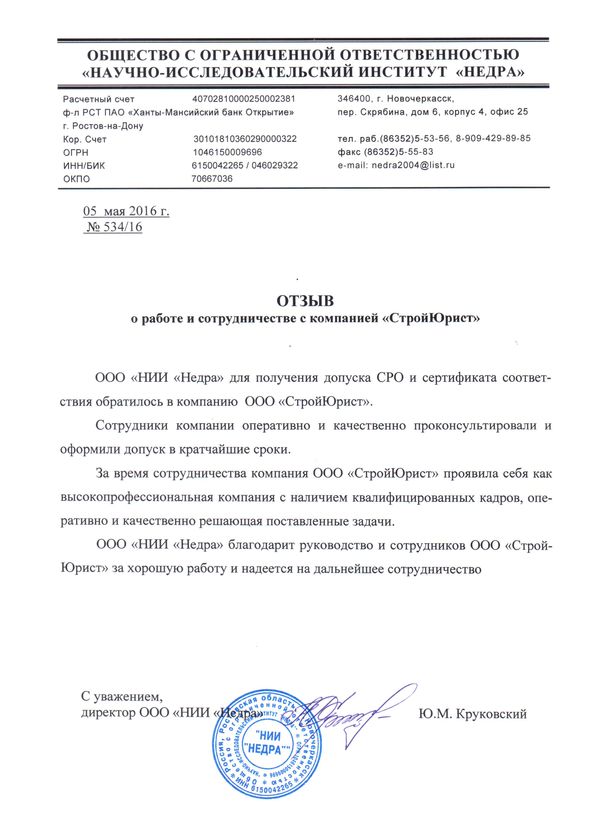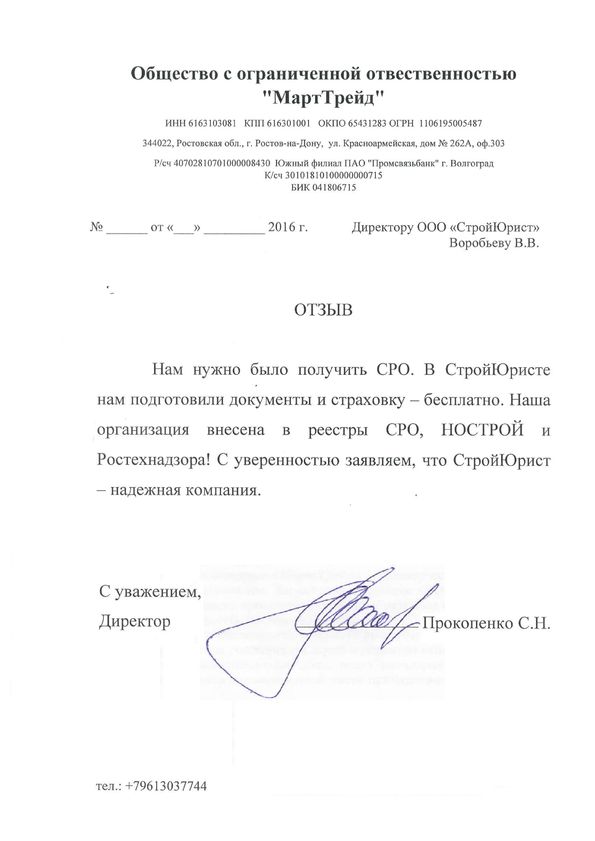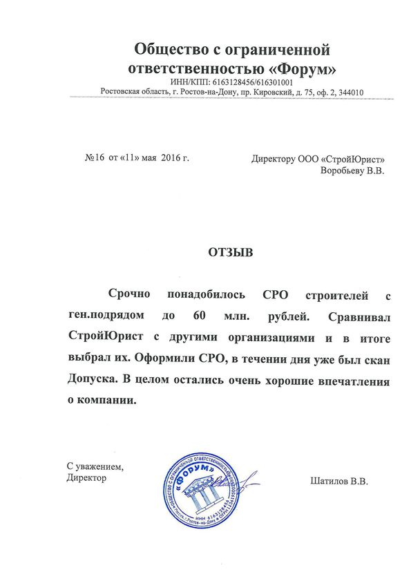 Отзывы клиентов "СтройЮрист" по вступлению в СРО в Ишиме