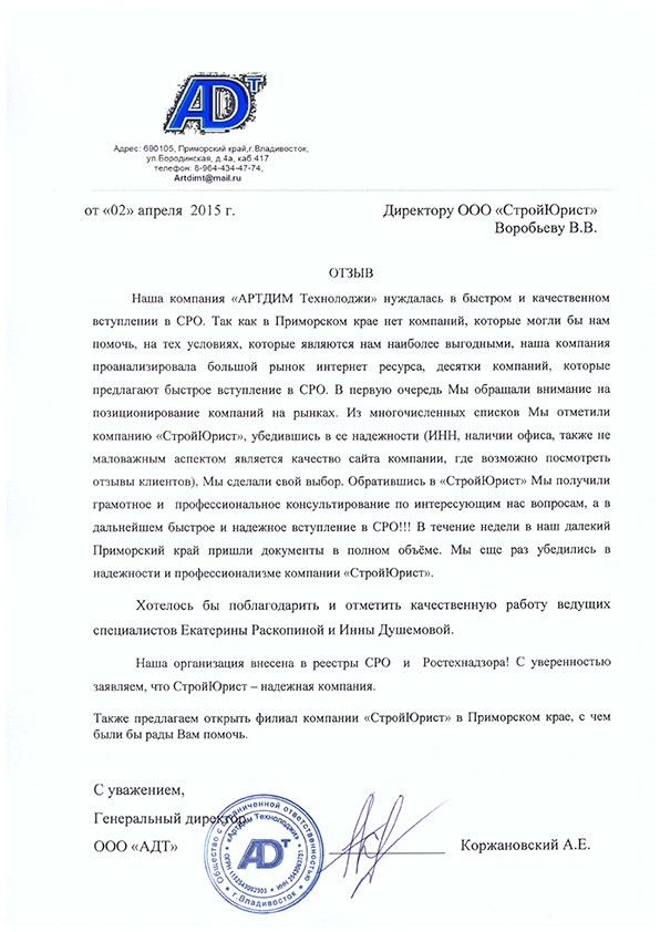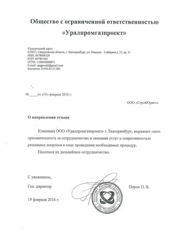 Отзывы клиентов "СтройЮрист" по вступлению в СРО в Ишиме