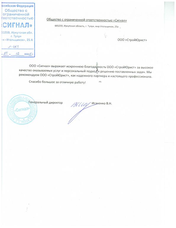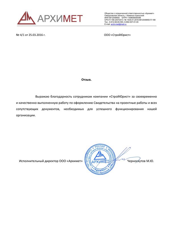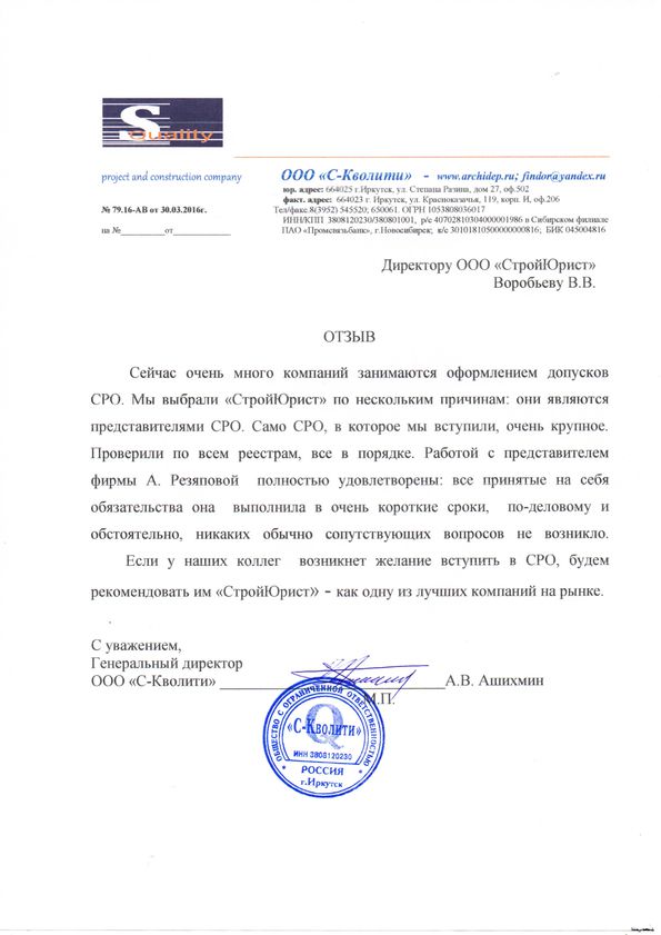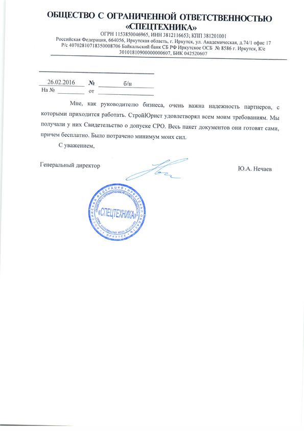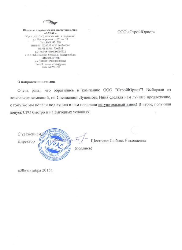 Отзывы клиентов "СтройЮрист" по вступлению в СРО в Ишиме