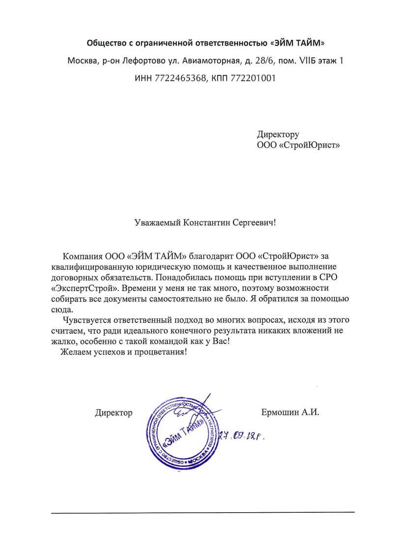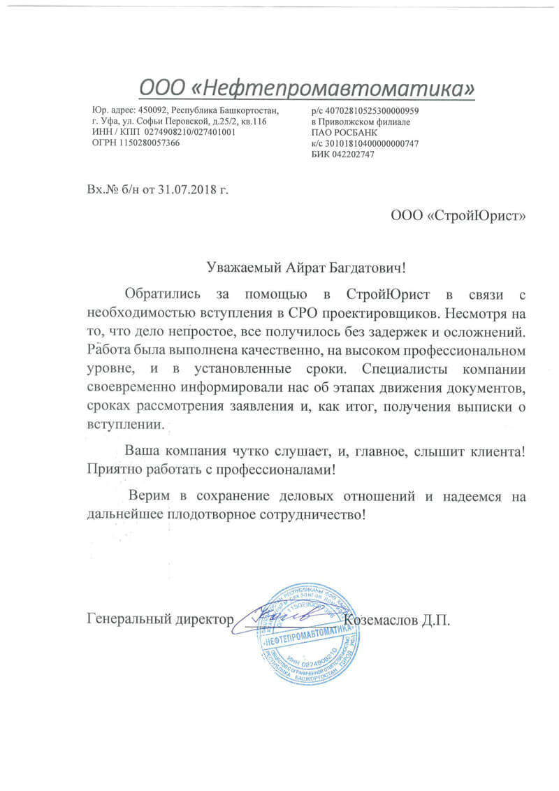 Отзывы клиентов "СтройЮрист" по вступлению в СРО в Ишиме