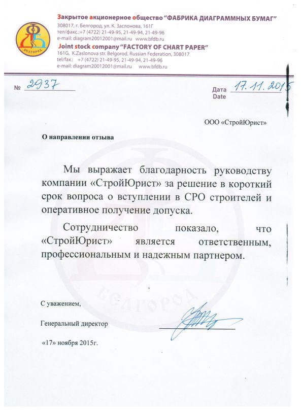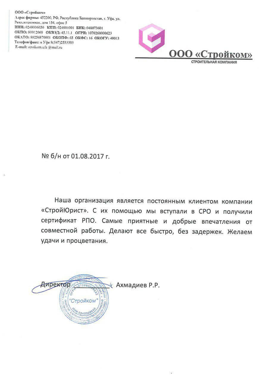 Отзывы клиентов "СтройЮрист" по вступлению в СРО в Ишиме