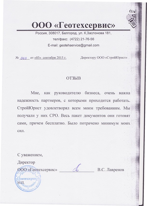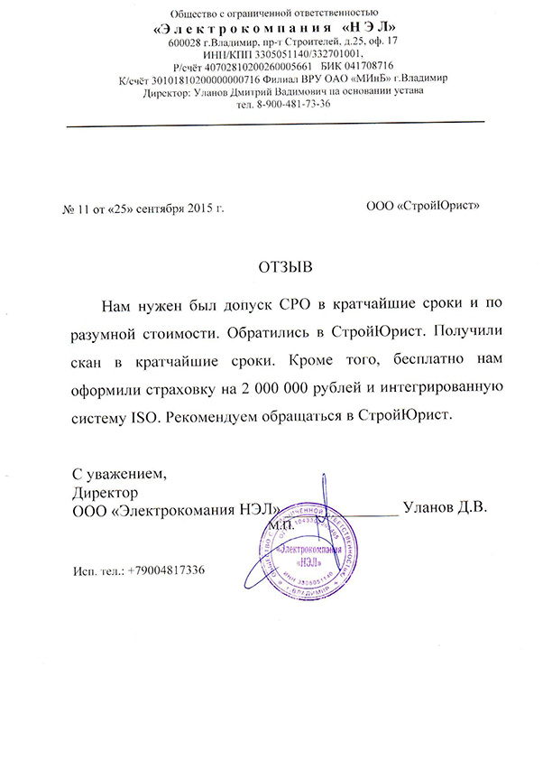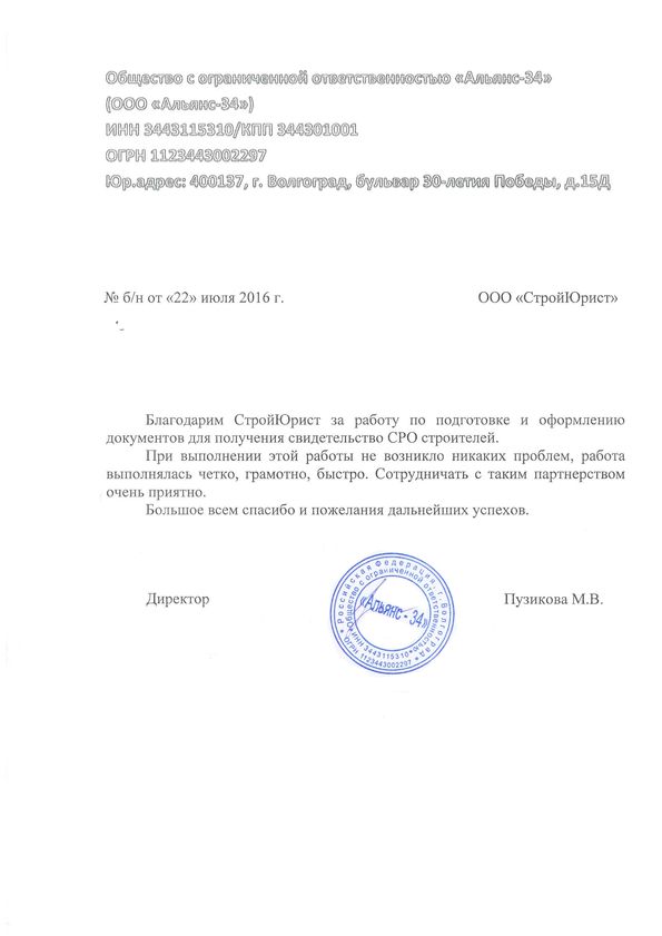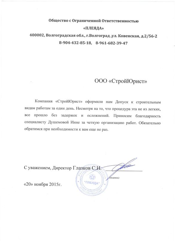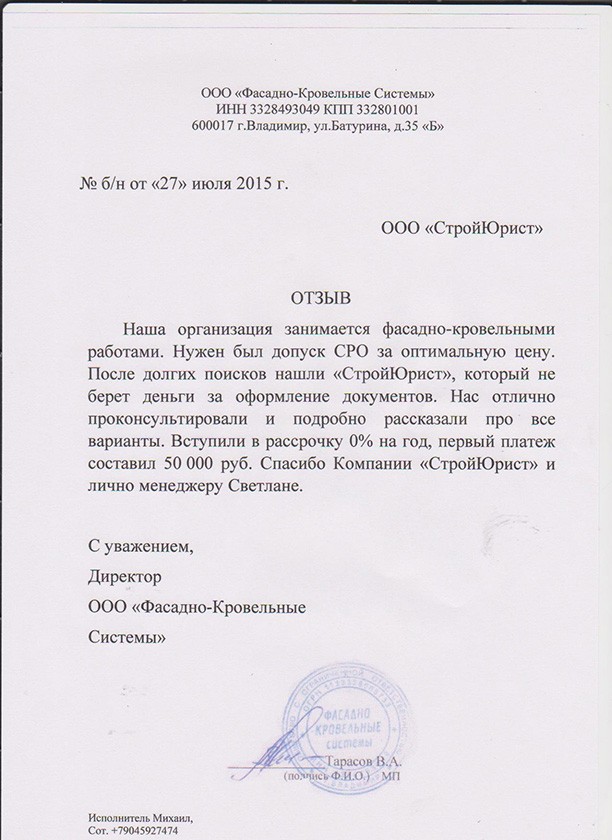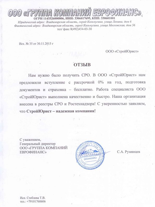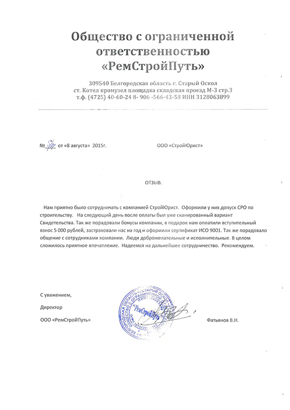 Отзывы клиентов "СтройЮрист" по вступлению в СРО в Ишиме